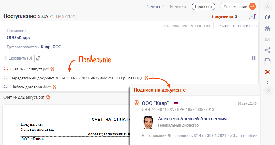 Юридическая значимость. Все документы подписываются квалифицированной электронной подписью.