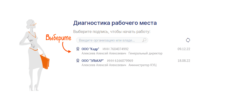 6. Выберите нужную ЭП.
