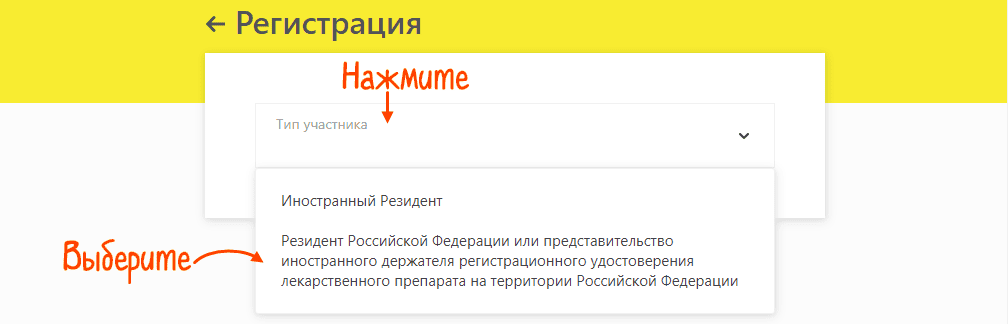 2. Выбрать нужную категорию участника процесса маркировки: производитель, импортер, аптечная организация, ИП и так далее.