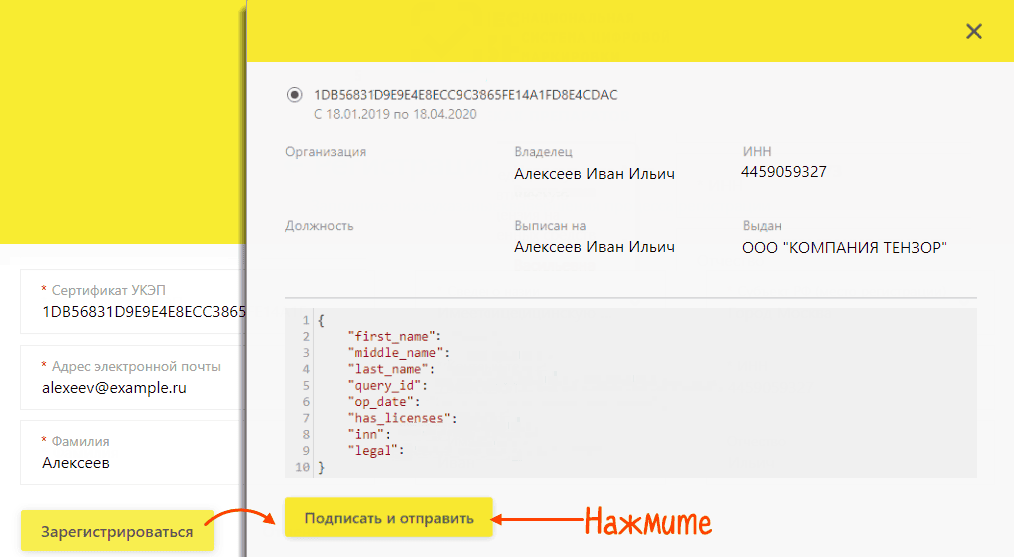8. Если все данные верны, кликнуть «Подписать и отправить».